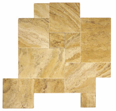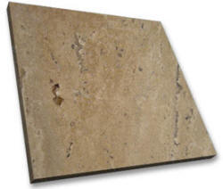 Travertine is one of several natural stones that are used for paving patios and garden paths. It is sometimes known as travertine limestone, sometimes as travertine marble; these are the same stone, even though it is neither limestone nor marble. The stone is characterized by pitted holes and troughs in its surface. Although these troughs occur naturally, they suggest to some eyes that considerable wear and tear has occurred over many years. Some installers use a grout to fill these holes, whereas others leave them open — travertine can even be purchased "filled" or "unfilled." It can be effectively polished to a smooth, shiny finish and comes in a variety of colors from grey to coral-red. Travertine is most commonly available in tile sizes for floor installations.